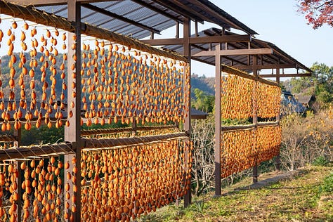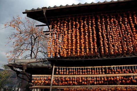 For three years now, I wait until this precise moment to collect unripe fruits from trees that I know around the mountain. I then slowly dry them using a traditional Japanese technology called, hoshigaki.